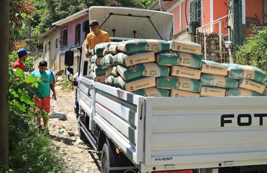 Alcaldia cholomeña entrega cemento para pavimento en el Mango Ahorcado en colonia Los Invencibles.