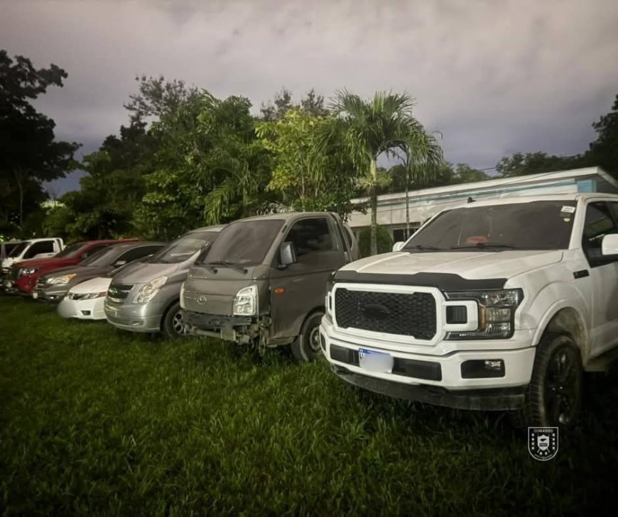 Más de 3,300 municiones, lanzacohetes y granadas 12 vehículos con compartimientos ocultos, asegurados 57,500 lempiras y 2,000 euros en efectivo. Uniformes militares y policiales, carnets de la FNAMP y equipo para dosificación de droga.