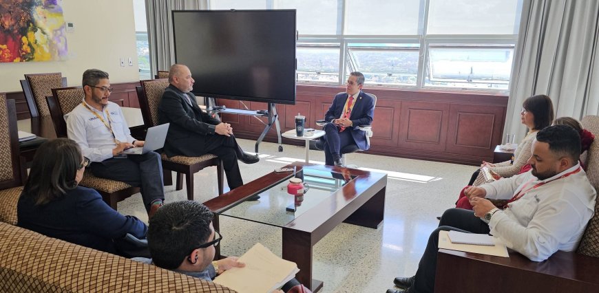 Posteriormente, se desarrolló una reunión de trabajo con autoridades de la DIRCOM y la Dirección Legal de la UNAH, con el objetivo de coordinar acciones y dar seguimiento a los procesos necesarios, contando además con el acompañamiento del director de Educación a Distancia de la UNAH, Licenciado Elmer Fernández.