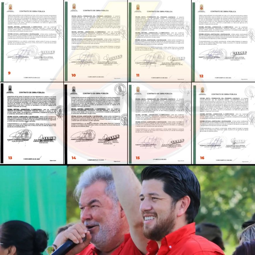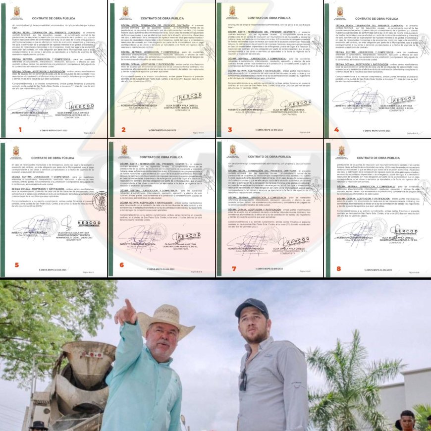 San Pedro Sula. Con su puño y letra, el alcalde Roberto Contreras personalmente firmó, selló y adjudico 33 contratos de obras viales a la empresa HERCOD S DE RL, la cual fue señalada por el Ministerio Público de ser utilizada por el yerno del alcalde para drenar 45.5 millones de lempiras de fondos municipales.