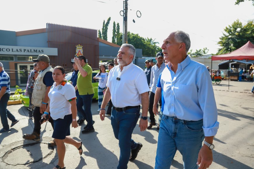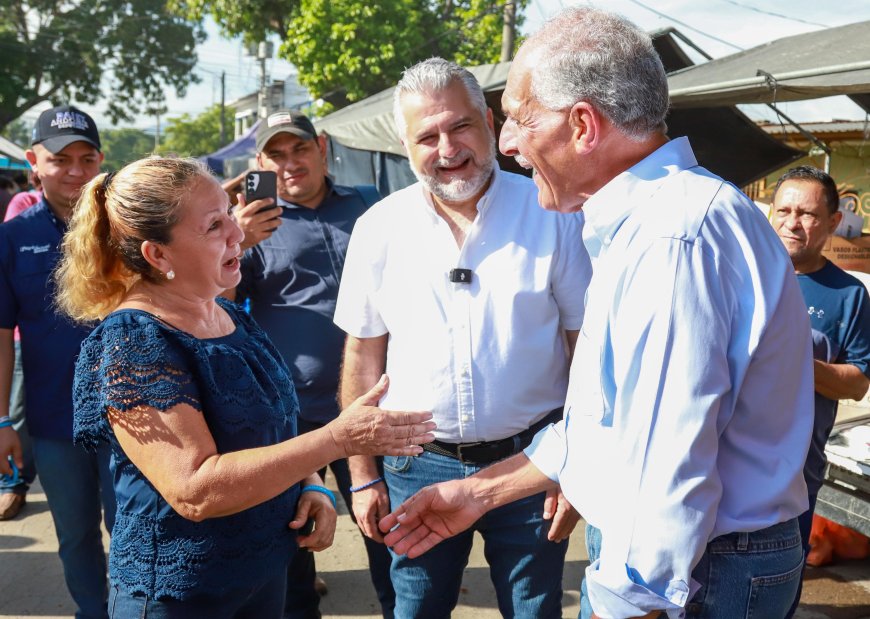 Nasry Asfura y Junior Burbara recorren la Feria del Agricultor del Barrio Cabañas en San Pedro Sula